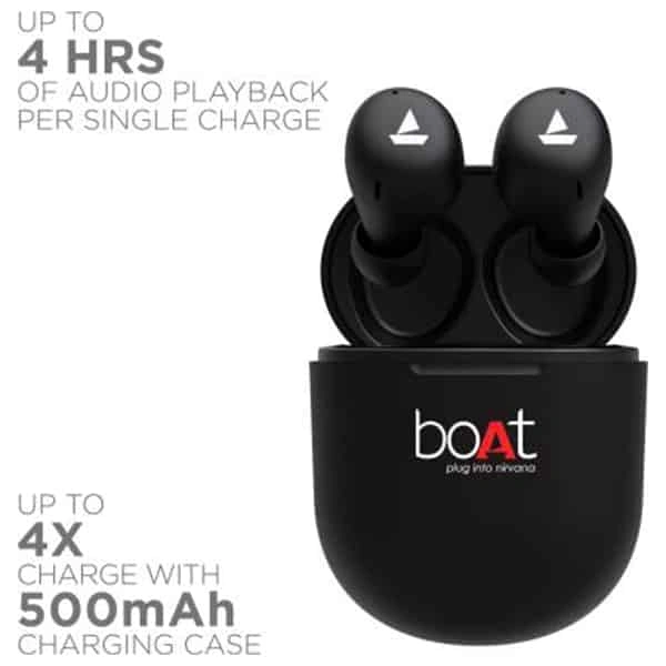 - Case Battery: Its power-packed 500mAh charging case ensures 4 times the charge for the earbuds.