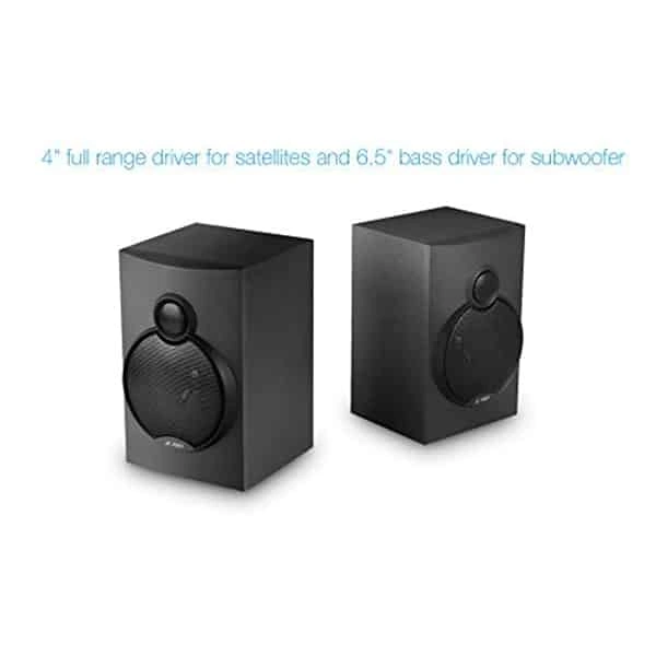 - 4" full range driver for satellites and 6.5" bass driver for subwoofer