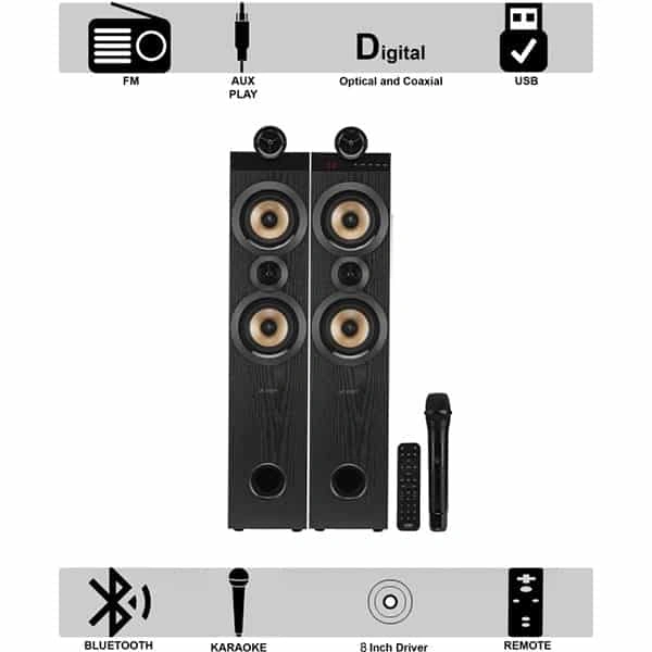 This compact tower speaker from F&D delivers a powerful sound output of 160 W, which is sure to keep all your guests entertained.