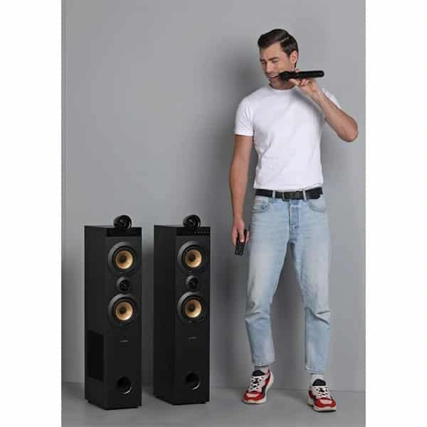 Perfect for MP3, PC, TV & Smartphones and tablets. A great way to listen to your smartphones and tablets supporting Bluetooth (A2DP), USB, MP3 player, PC, TV, CD, DVD, and all your multimedia stuff. Designed for style Nice design – looks as good as its sound.➦ Karaoke Feature