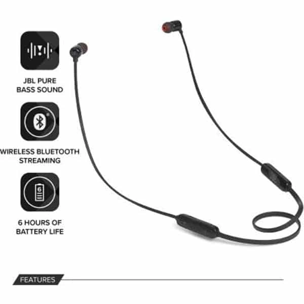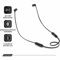 Featuring JBL Pure Bass Sound, the JBL T110BT headphones offer a grab 'n' go, wireless solution for your everyday usage along with the ability to make or take hands free calls and 6 hours of battery life. Imagine headphones that quickly charge in 2 hours, come in 6 distinctive colors, feature a flat tangle free cable and are lightweight enough to comfortably wear for hours on end. And when you combine magnets that ensure the headphones are not dangling when not in use, the tangle-free cable and the comfort of the ergonomic ear-tips and neckband design, it's easy to see how the JBL T110BT headphones can become an essential part of your day-to-day music loving life.- JBL Pure Bass sound
