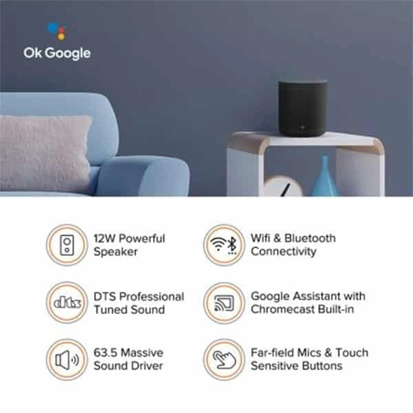 Enjoy the brilliance of a 63.5-mm audio driver by bringing home this Mi Smart Speaker. This 12-watt speaker delivers stunning sound quality, and it can also be paired with other similar speakers for a powerful cinematic sound experience. In addition, you can access and control it using English/Hindi voice commands.