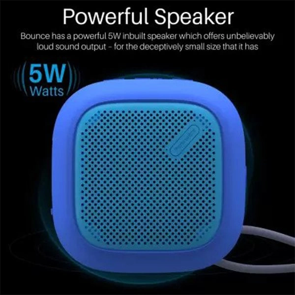 Bounce is a small and compact Bluetooth speaker with an unbelievably powerful sound output. This cube shaped compact and versatile 5W / 800mAh mini Bluetooth speaker “Bounce” is a re-chargeable Bluetooth 4.2 Speaker with FM and USB music options. It comes in two lively colors black and blue and weight just about 200 grams. Each color has dual tone for enhanced aesthetic appeal. It has a smooth and strong silicon body which gives it a nice touch and stability on higher volumes.Bluetooth 4.2 BLE offers 250% faster speed, lower energy consumption and much more security than even Bluetooth 4.1. Bounce is a re-chargeable Bluetooth 4.2 Speaker with FM and USB music options. Listen to your FM radio programs, be it early the morning spiritual songs or late night romantic numbers using its powerful FM tuner with inbuilt antenna.