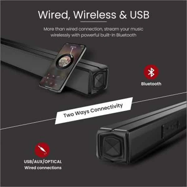 - Wired, Wireless & USB: Wired/wireless connections to Bluetooth, RCA, AUX, OPT. It comes with additional USB ports which have the better compatibility to connect with more devices. It has the sleek design with special features which ensure meeting all your sound requirements.