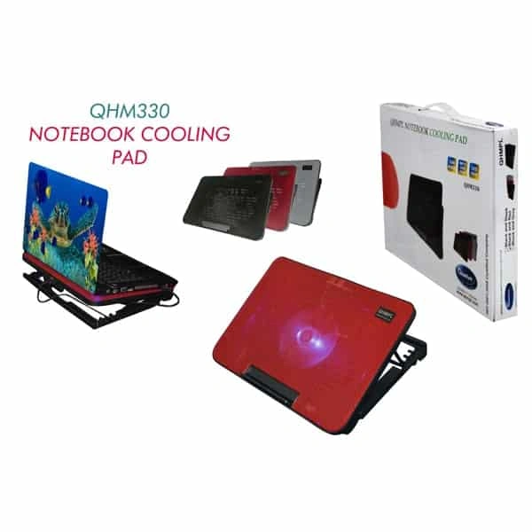 - Stylish and Efficient Cooling Pad The cooling pad has a stylish design and optimum dimension to accommodate most of the laptops and notebooks. It is equipped with a noiseless fan to allow you work peacefully. The built-in fan has a speed of 1000 rpm and airflow of 100 cfm which helps prevent your laptop from overheating. The fan gets power through the USB port with a voltage of DC 5V. Lightweight and Convenient Design With a weight of 921 gm and dimension of 32 x 30 x 3.8 cm, the Quantum QHM350 Cooling Pad for Notebooks is easy to carry a cool pad. It will fit in your laptop bag easily. You can take it comfortably wherever you go. It will allow you work smoothly and efficiently day and night. The long hours of laptop use is not a concern anymore.