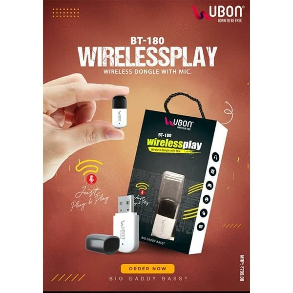 - Model Name: Ubon BT-180 WIRELESS PLAY Wireless Dongle with Mic