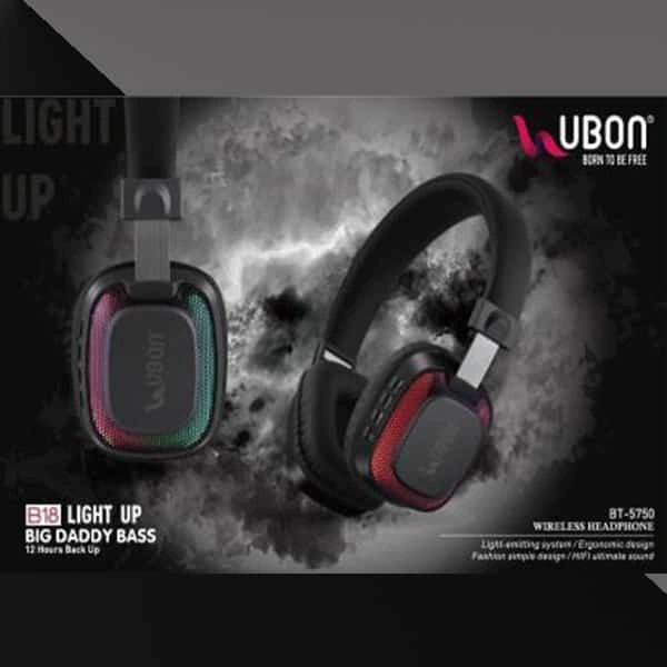 Ubon BT-5750 wireless headphones, Immerse yourself in the stunning audio that the Ubon Bluetooth headset delivers. The headphone delivers high bass power and light emitting system. It comes with wireless calls and music , FM radio, multi color light, 360mAh chargable battery and Audio input .The headphone is designed especially for those, who are fervent music lovers and like to carry their entertainment source wherever they go. This unique & ergonomically designed headset comes with a flexible urethane joint so you can conveniently wear around your neck. While the headphone’s speaker units deliver rich bass, the easy-to-use control buttons let you control multiple functionalities without much hassle. Shopy Vision Original Products Ubon Logo