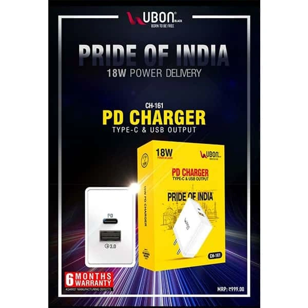 Ubon CH-161 18W PD Charger Type-C & USB Output