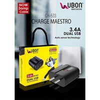 UBON CH-533 dual USB charger is BIS approved an ultimate stamp of safety and reliability you need for your expensive and valuable devices. Sophisticated circuit design with overheated, over-current, over-charging protection will automatically stop charging when battery is full. It comes with one Input: AC 110-240V~50/60Hz AC Input Voltage. This USB wall adapter can work as a travel charger as these automatically adjusts to all voltages and frequencies in this range.