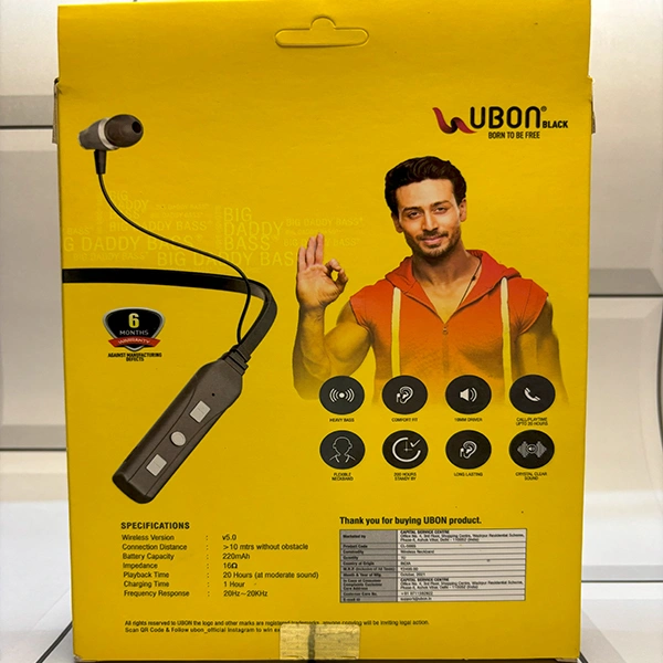 Ubon brings truly wireless neckband designed with advanced stereo audio system that delivers high-quality sound experience with rich & deep bass to immerse you in music without side tones.