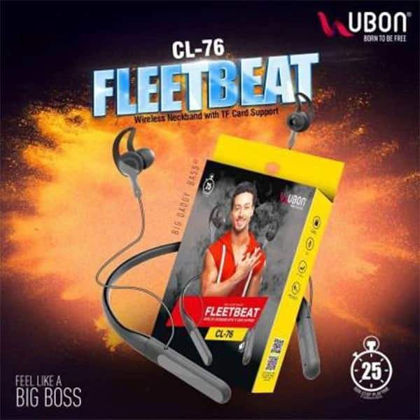 UBON Presents CL-76 Fleetbeat wireless Bluetooth v5.0 Neckband with a Massive 25 Hours of continuous Playback, High quality sound, Ear fins for better support and Immeresive bass with little distorion. This excelletn trandy neckband comes with ear fins that secure a tigh fit and make sure your earphones do not fall off if you are running or working out. With in line call control and music control you can be totally wireless and with a range of 10 meters you can be free whilst excercising and commuting without any worries. An Excellent neckband and companion for daily heavy use.