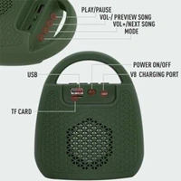 - BUILT-IN TF CARD & USB READER: No matter if you have a playback device or not; it features a standard SD card & USB reader to let you play your music files directly from the flash drive. Besides, there are 5 buttons on the speaker: On/Off, V-, Mode, Play/Pause, V+, Next/Play.