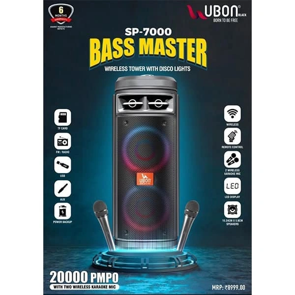 Ubon SP-7000 Bass Master Wireless Tower with Disco Lights