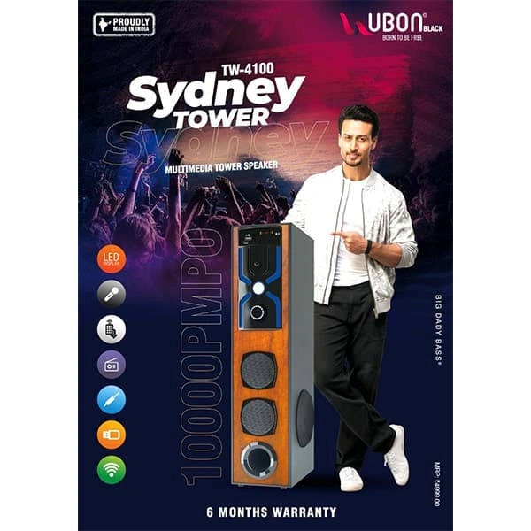 UBON presents a proudly Made in India Tower Speaker TW-4100 Sydney Tower with Disco Lights. MULTIMEDIA SPEAKER: TW-4100 Sydney is a 60 Watt 10000 PMPO multimedia speaker. The Tower consists of inbuilt one 14 cm Woofer and two 3 inch satellite speakers. It comes with a fully functional wireless remote.➦ WIRELESS CONNECTIVITY & REMOTE
