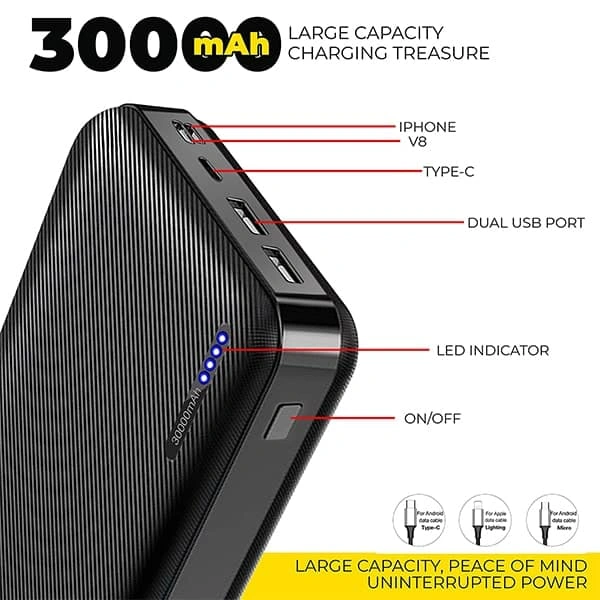 UBON 30000 mAh Powerbank PB-X33 Jumbo Power with 3-in-1 Charging Ports