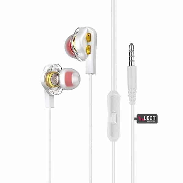 - UNIVERSAL 3.5 MM EARPHONES WITH MICROPHONE: Ubon UB-735 Dual Driver Earphone is designed to offer a clear, natural & bass-rich sound for an ultimate audio listening experience. Featuring anti-slip finish and durable cable, it is designed for enhanced audio listening comfort in almost any environment.