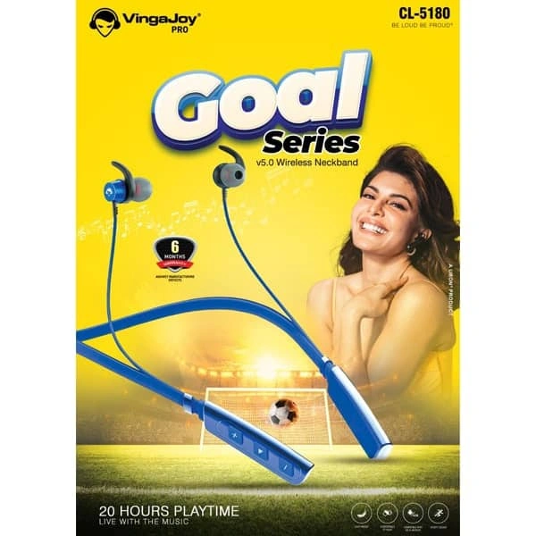 VingaJoy CL-5180 Goal Series Wireless Neckband designed with advanced stereo audio system that delivers high-quality sound experience with rich & deep bass to immerse you in music without side tones.➦ WIRELESS NECKBAND EARPHONE