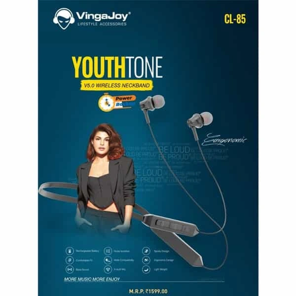 VingaJoy CL-85 Wireless Neckband designed with advanced stereo audio system that delivers high-quality sound experience with rich & deep bass to immerse you in music without side tones.