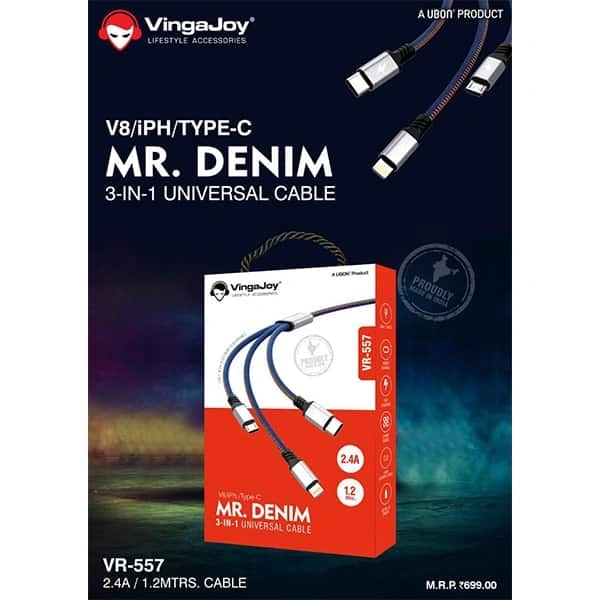 - Model Name: Vingajoy VR-557 2.4A 3-IN-1 UNIVERSAL CABLE