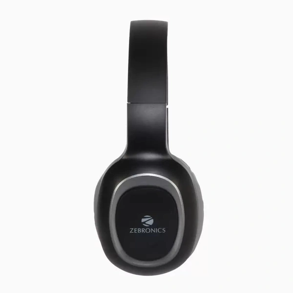 It is a wireless BT headphone that comes in an ergonomic design with soft earcups for comfort. The headphone has a built-in mic and comes with 11 hours of playback time. It also features a voice assistant for android/iOS devices, comes with controls for volume/media, and has a built-in FM Radio. Shopy Vision Original Products Zebronics Logo